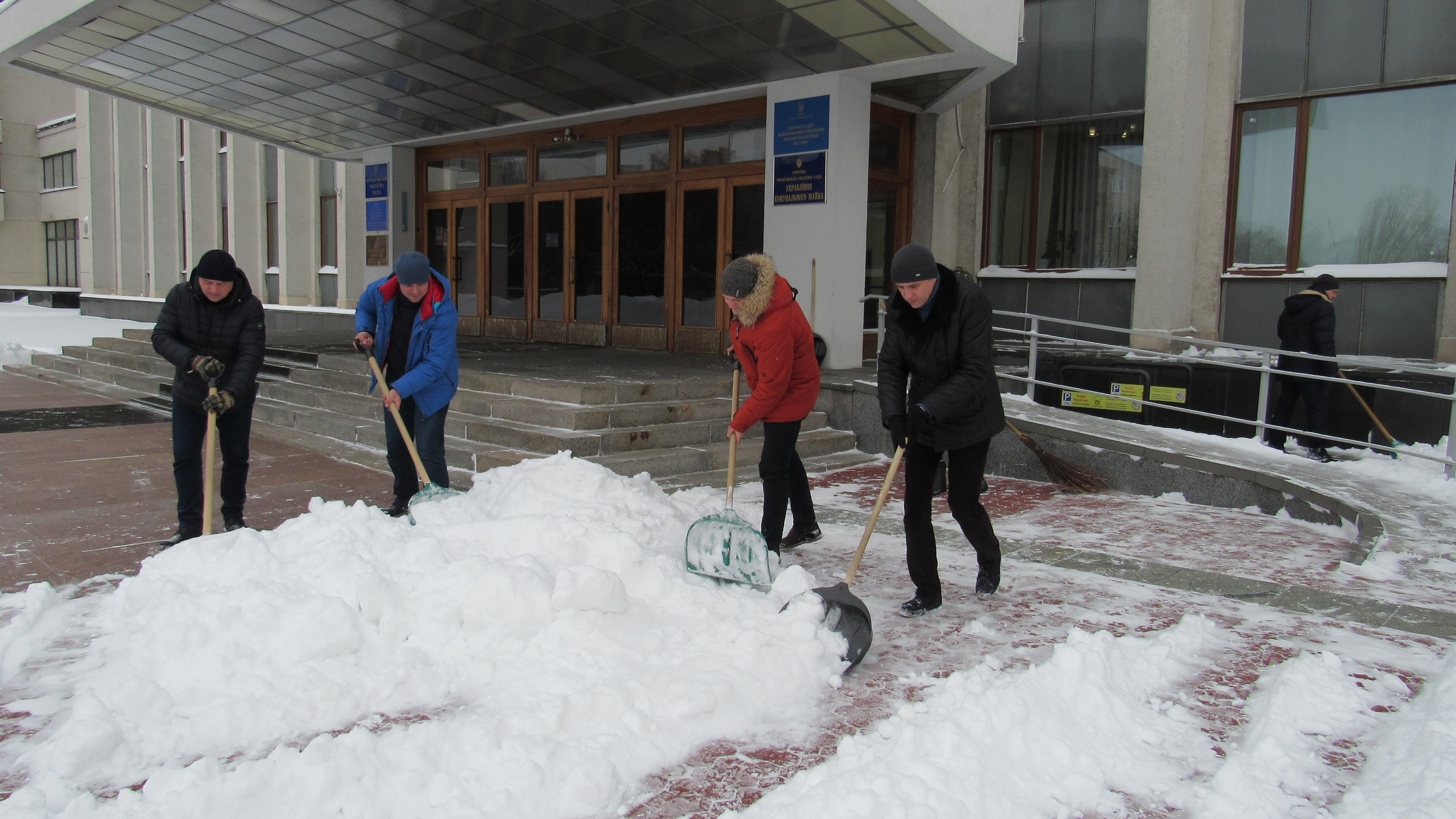 Працівники управління комунального майна обласної ради, за дорученням начальника управління Василя Куліди, під керівництвом заступника начальника управління Сергія Свиридова вивільнили із заметів адмінбудівлю обласної ради.